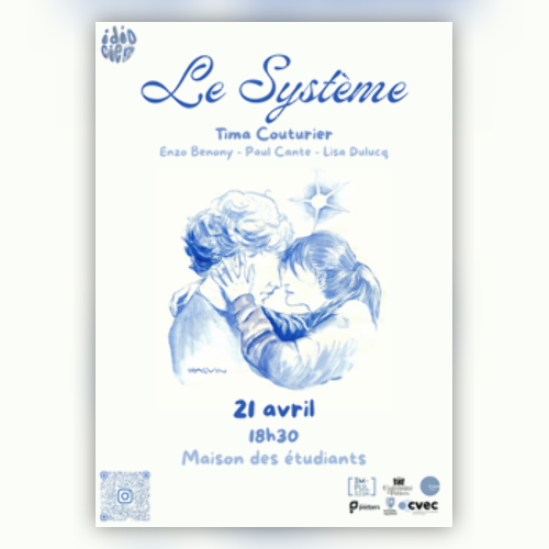 Afficher le planTima Couturier et Paul Cante sont les lauréats du dispositif Impulsion 2025, dans le cadre duquel iels sont accompagné.es toute l’année pour la réalisation de leur projet artistique à visée professionnelle. Ces deux étudiant.es du master assistant à la mise en scène seront épaulés par les équipes de la MDE, suivront des formations adaptées à leurs besoins (administration, production, communication) et seront accueillis plusieurs semaines en résidence dans la salle de spectacle La Curieuse. Les objectifs de cette année : la création de la toute jeune compagnie IdioCie et le montage de leur premier spectacle : Le Système.